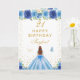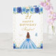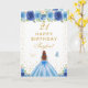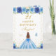 Tarjeta Blue Floral Brown Hair Chica Feliz Cumpleaños