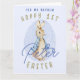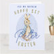 Light Blue Happy 1st Easter Egg con Peter Rabbit y un nombre personalizado para tu sobrino. ¡Envíe a su sobrino la primera tarjeta de Pascua de la tía!