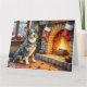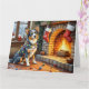 Tarjeta Blue Heeler Fireplace with Christmas Lights