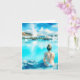 Esta tarjeta de saludo tiene un retrato acuarela de una mujer rubia que mira la laguna azul en Islandia.