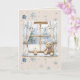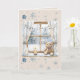 Tarjeta Blue Silver Snowflakes Window Teddy Bear Christmas