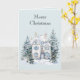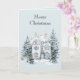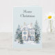 Tarjeta Blue White Christmas Winter House Trees