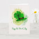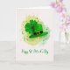 Tarjeta sencilla del día de San Patricio con tréboles y un sombrero de duende dibujados en un estilo de acuarela de boceto con salpicaduras de "pintura"; el fondo falso parece ser papel de acuarela.