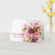 La tarjeta boda se muestra con una foto impresa de un ramo de novia adorable. Texto: "Una bendición boda para tu día especial". El mensaje interno dice: "Que tengas amor que nunca termine, mucho dinero y muchos amigos, que la salud sea tuya, lo que hagas, y que Dios te envíe muchas bendiciones". Personalizar este artículo o compra tal cual. Texto mostrado en un bonito rosa profundo.