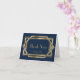 Esta elegante tarjeta de agradecimiento boda de inspiración vintage de los años 20 incluye las palabras "Gracias" en una tipografía de estilo deco de color dorado, rodeada por un marco geométrico estilo deco Relieve metalizado dorado adornado con un fondo azul marino. Añada los nombres de la pareja y la fecha de boda en el sans serif color oro.