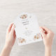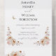 Esta tarjeta boda todo en uno cuenta con un impresionante ramo acuático de peonías rosas y cremas suaves, bellamente arreglado con follaje verde sutil. El elegante ilustracion floral capta la belleza natural de las peonías, proporcionando un diseño sereno y romántico para compartir todos los detalles esenciales de tu día especial.