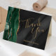 Esta elegante y moderna tarjeta de agradecimiento boda presenta un borde de agujeros de color verde esmeralda recortado con un falso purpurina de oro. El texto del personalizable combina las palabras "Gracias" en escritura a mano de color dorado y los nombres de la novia y el novio en letra cursiva en un fondo de color de agua negro.