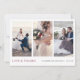 Este sencillo y elegante boda de fotos de tres de agradecimiento incluye sus nombres y fecha bajo sus fotos junto con 'AMOR Y GRACIAS'. resaltado en un elegante tono burdeos. Puede elegir cambiar el tipo de letra, puntuación o color utilizado para varios elementos de texto de este diseño en la parte frontal y/o posterior. Por ejemplo, puede elegir cambiar el color del texto 'AMAR y GRACIAS'. O cuando edite para mostrar sus propios nombres, puede cambiar el formato de los nombres a "Mr. y Mrs....' Hemos elegido un poco más negro suavizado como el color predeterminado para los nombres y el texto de fecha en la parte delantera y un tono gris elegante para el texto de ejemplo en la parte posterior. Hemos colocado un ejemplo de texto en la parte posterior para que usted edite y reemplace con su propio mensaje, con o sin sus nombres, si desea firmar a mano cuando obtenga las tarjetas. Pero también puede optar por borrar nuestro ejemplo de texto y dejar la parte trasera totalmente en blanco para que pueda escribir un mensaje a mano en cada tarjeta y firmar sus nombres. En cualquier funda recuerde que también hay un ejemplo de texto en la parte trasera y borrar todo nuestro ejemplo de texto a ambos lados de la tarjeta. Puede cambiar el color, el tipo de letra y el tamaño del texto para adaptarlo a su estilo. Usa las herramientas de diseño intuitivo, tus tres fotos favoritas y tu inspiración para hacer de esta moda una tarjeta de boda de fotos multicollage moderna, ¡gracias! Tenemos una selección de otras tarjetas minimalistas de agradecimiento de boda moderno en varios formatos, así que por favor, navegue por nuestra tienda para más ideas!