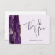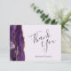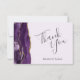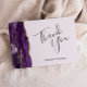 Esta elegante tarjeta de agradecimiento de boda plano presenta un borde de agate color morado con un falso purpurina de oro. El texto del personalizable combina las palabras "Gracias" en el guión de escritura a mano gris carbón y los nombres de la novia y el novio en letra cursiva en un fondo de lavanda pálido. Agregue su propio mensaje personal al reverso en blanco.