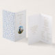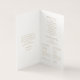 Moda y diseño. Elegante, pero simple. Este programa de tarjeta plegada boda incluye un mensaje de bienvenida y detalles del programa completamente editables con la foto de su pareja. El diseño se basa en un fondo blanco nítido, con un conjunto de fuentes contemporáneas en una fuente cálida y dorada. Totalmente elegante y romántico con tonos juveniles. Este diseño añade algo tan especial a tu gran día. Personalice este diseño único para que sea suyo. CONSEJO: Zazzle transforma automáticamente su foto en el formato de círculo deseado.