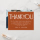 Texto minimalista Terracotta Boda Gracias Disponible digitalmente e impreso. Un diseño tipográfico totalmente personalizable para agradecer a sus invitados. Reemplace la foto de ejemplo de la parte posterior por su favorita. También puede cambiar el texto y los colores de fondo si lo desea a través de la opción personalizar para que coincida con el tema de color boda.