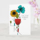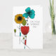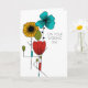 Crea una tarjeta personalizada para celebrar a una pareja especial. Esta tarjeta de boda se puede personalizar con tu propio mensaje en el interior. Cuenta con una ilustración floral inspirada en el diseño Art Nouveau en negro, azul turquesa brillante, rojo, verde claro y amarillo dorado. Tu texto personalizado está en una fuente sans serif limpia.