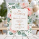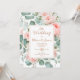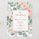 Elegante carta de bodas con peonías rosas de color, rosas de marfil blando y vegetación eucaliptus fresca, perfecta para una romántica y eterna celebración del amor.