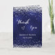 Tarjeta Boda fotográfico azul marino de plata gracias
