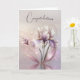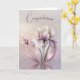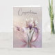 Las flores de iris malva y blanco con detalles intrincados están delineadas en oro y adornadas con rocío para felicitaciones bodas. Se puede cambiar todo el texto.