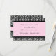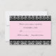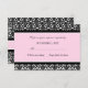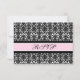 Tarjetas RSVP de casamiento en elegante color rosa claro, negro y blanco con un patrón clásico de damasco floral. Personalizable con los detalles de su boda, disponibles en muchos productos bodas que coinciden.