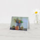 una foto de una escena de cosecha de otoño con varias decoraciones de Halloween. Muestra una mesa de madera con un mantel blanco, sobre el que hay varias calabazas, calabacines, mazorcas de maíz, velas y una linterna. Detrás de la mesa, hay una cerca de madera con algunas hojas secas y enredaderas. El fondo está borroso, pero parece ser un paisaje rural con algunos árboles y campos. La foto tiene una atmósfera cálida y acogedora, con tonos naranjas y amarillos que dominan la paleta de colores.