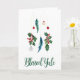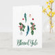 Envíe el saludo perfecto esta temporada navideña con un brillante y colorido color de agua Boho Blue Feathers y Holly "Blessed Yule" diseño de solsticio con su texto personalizado en una plantilla fácil de editar.
