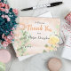 Envíe un sincero Gracias en creamísta y amarillo. Esta tarjeta de agradecimiento rosa al jardín es muy encantadora, con invitaciones a juego, sobres y decoración fiesta. Los rosas acuáticos están adornados con un rociado de hojas de eucalipto de plata del dólar. Estas tarjetas de agradecimiento floral de acuarela se personalizan fácilmente después de tu fiesta de graduación, fiesta de cumpleaños o boda.