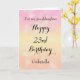 Una tarjeta de cumpleaños de color rosa, amarillo y naranja para la nieta, hija, ahijada, etc. La parte delantera de este cumpleaños número 23 de bonito se puede personalizar fácilmente con el nombre del destinatario de cumpleaños. El mensaje de la tarjeta interior también se puede personalizar. Esta tarjeta de 23 años le haría un toque único de cumpleaños.