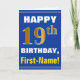 Tarjeta Bold, Blue, Faux Gold 19th Birthday w/ Name Card
