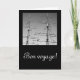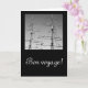 Tarjeta negra con foto en blanco y negro de mástiles de barco y el texto bon voyage. ¡Personalizable.