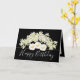 Hermoso ramo de orquídeas blancas y rosas blancas con un fondo de color negro. El texto de felicitación de cumpleaños utiliza una tipografía de script atractiva. Las flores cubren la parte delantera de esta tarjeta, que puede utilizarse como tarjeta de agradecimiento, tarjeta de cumpleaños o cualquier otra tarjeta de tu elección. Personalízalo con tu texto y/o imágenes para convertirlo en uno de los tipos!