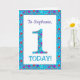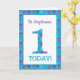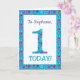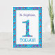 Una tarjeta de cumpleaños muy bonito para personalizar para cualquier nombre o pariente, con el número 1 y el borde en flores brillantes y color marrón sobre un fondo azul turquesa. También puede cambiar el mensaje interno si lo desea.