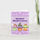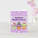 Esta tarjeta de saludo de Halloween presenta una bonita variedad de quequitos festivos en un fondo de estilo violeta de bonito.