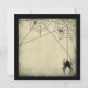 La araña viuda negra cuelga sobre el cartel "Boo" y el viejo periódico con telarañas.