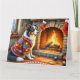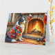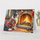 Tarjeta Border Collie Chimenea con Luces de Navidad