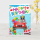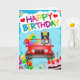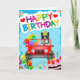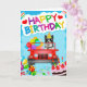 Border Collie perro conduciendo con globos de cumpleaños y pastel es una tarjeta de cumpleaños perfecta para alguien que ama a los perros salchicha. Cualquier mamá o papá de Border Collie amará esto.