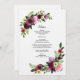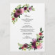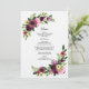 Tarjeta Borgoña floral Rubor Boho rústico del menú de la cena de boda elegante con las flores pintadas a mano