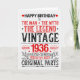 Tarjeta Born in 1936 Birthday the Man the Myth the Legend