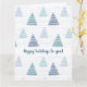 Árboles de Navidad con guirnaldas de abadejo para una temporada de invierno festiva. Patrón sereno y minimalista con un bosque de abetos bajo la nieve con sutiles líneas de puntos. Un motivo repetido de pinos nevados crea un entorno forestal tranquilo a lo largo de la superficie. La sencillez de las siluetas arbóreas contribuye a la estética general de la calma. Delicadas líneas de puntos se intercalan entre los árboles. La paleta de colores es silenciosa y resalta los tonos naturales. Este sencillo pero elegante patrón aporta un sentimiento de calma y belleza inspirada en la naturaleza a cualquier lugar. La tarjeta de vacaciones es personalizable, puedes editar texto de saludo para personalizarlo.