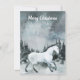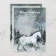 Tarjeta Bosque invernal Caballo blanco Feliz Navidad