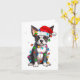 Tarjeta Boston Terrier Christmas Santa Hat Tree Lights Paj