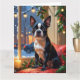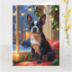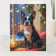 Tarjeta Boston Terrier con vacaciones de Navidades ilumina