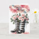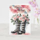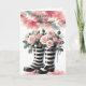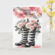 Una hermosa tarjeta de cumpleaños con un impresionante par de botas rayadas blancas y negras llenas de rosas suaves, toques de color oscuro acentúan el fondo. Personalizar como se desee.
