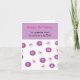 Una bonita tarjeta de cumpleaños con botones morados y pequeños arcos rosados en un fondo blanco. La mitad superior de la tarjeta es morada con un mensaje lindo. Personalizar como se desee.