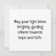 La tarjeta de felicitación "Brilla tu luz" es perfecta para enviar mensajes de aliento y fe. Con una persona parada en un acantilado con vigas de luz que atraviesan las nubes, simboliza la esperanza y la guía que la fe brinda en tiempos inciertos.
