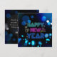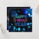 Tarjetas de Año Nuevo con brillo neón Black & Blue Midnight Sparkle: