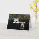 Confeti divertido con texto blanco y tostada de flauta de champán por 35 años en negro. Se puede cambiar el color de fondo.