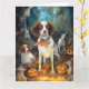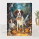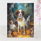 Tarjeta Brittany Spaniel de Halloween con calabazas espelu
