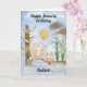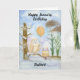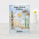 Soft and serene, this hand-painted watercolor captures a Snowy Owl resting on a winter branch beside a layered vanilla birthday cake topped with gentle purple frosting and glowing candles. Ivy-covered trees in the background add a quiet January charm, making this a sweet and thoughtful birthday scene created especially for a brother who loves birds, nature, and peaceful winter moments.