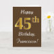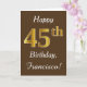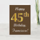 Tarjeta Brown, 45.o cumpleaños del falso oro + Nombre de