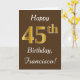 Características del este de cumpleaños diseño simples de tarjeta el mensaje "45.o cumpleaños feliz", con el "45.o" teniendo un falso oro-como aspecto. También ofrece un nombre de encargo, y un fondo marrón. Podría ser dado alguien que está celebrando su quinto cumpleaños cuarenta.