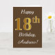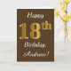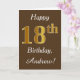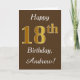 Características del este de cumpleaños diseño simples de tarjeta el mensaje "décimo octavo cumpleaños feliz", con el "décimo octavo" teniendo un falso oro-como aspecto. También ofrece un nombre personalizado, y un fondo marrón. Podría ser dado alguien que está celebrando su décimo octavo cumpleaños.