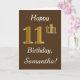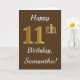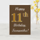Tarjeta Brown, Faux Gold 11th Birthday + Custom Name