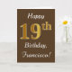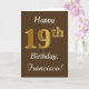 Tarjeta Brown, Faux Gold 19th Birthday + Custom Name